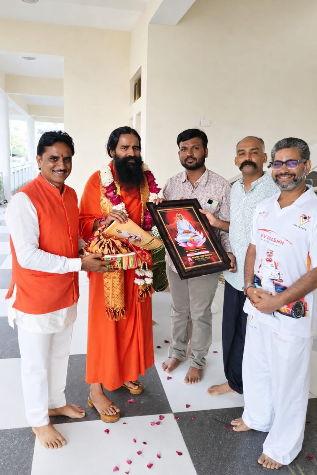 “I felt deeply honored and blessed to meet Parama Pujya Baba Ramdev Ji Maharaj, founder of Patanjali Yogpeeth, and to receive his divine blessings.”